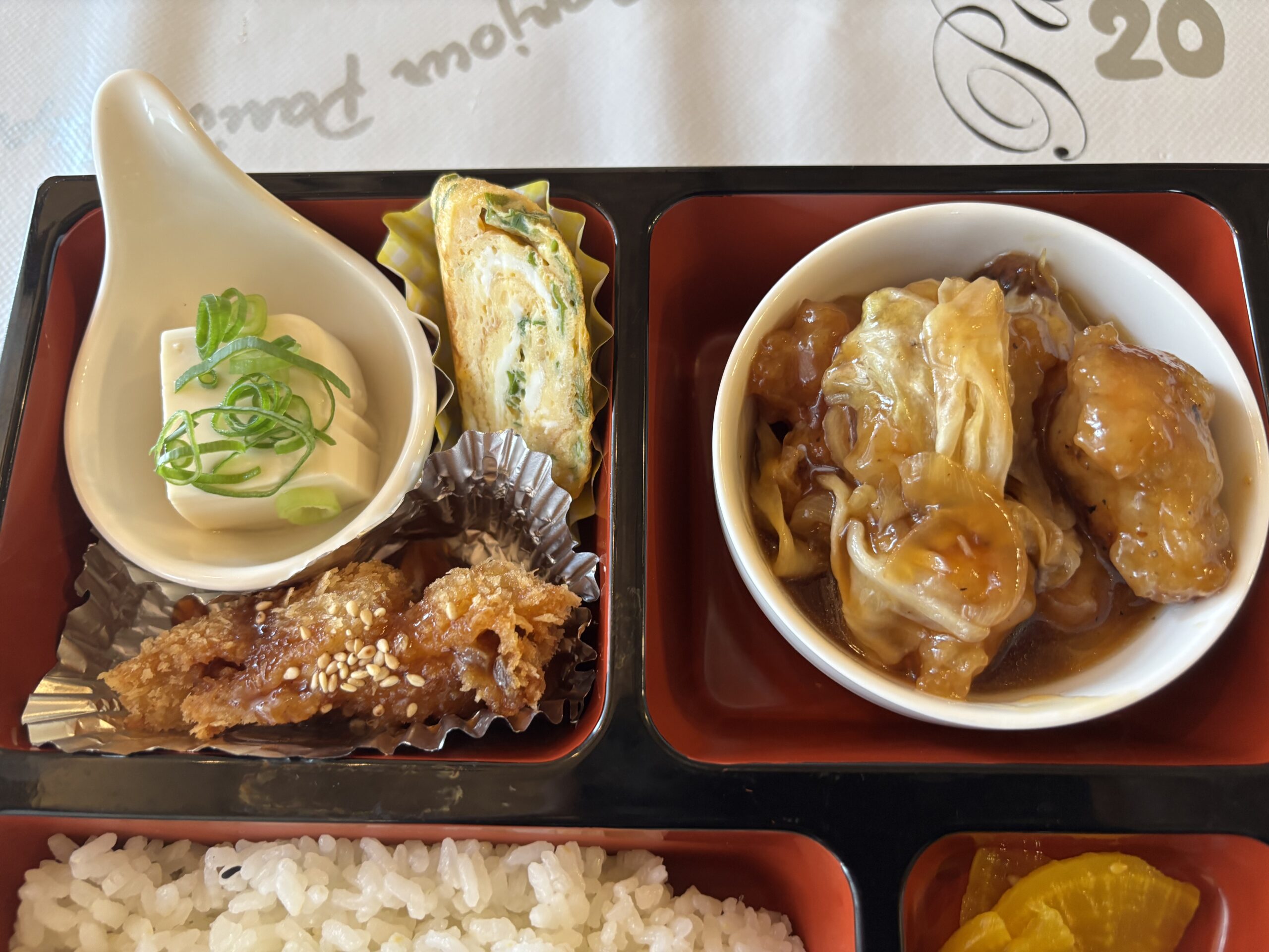 私は日替わりランチの 二九月特製みそ豚、酢どりの定食に