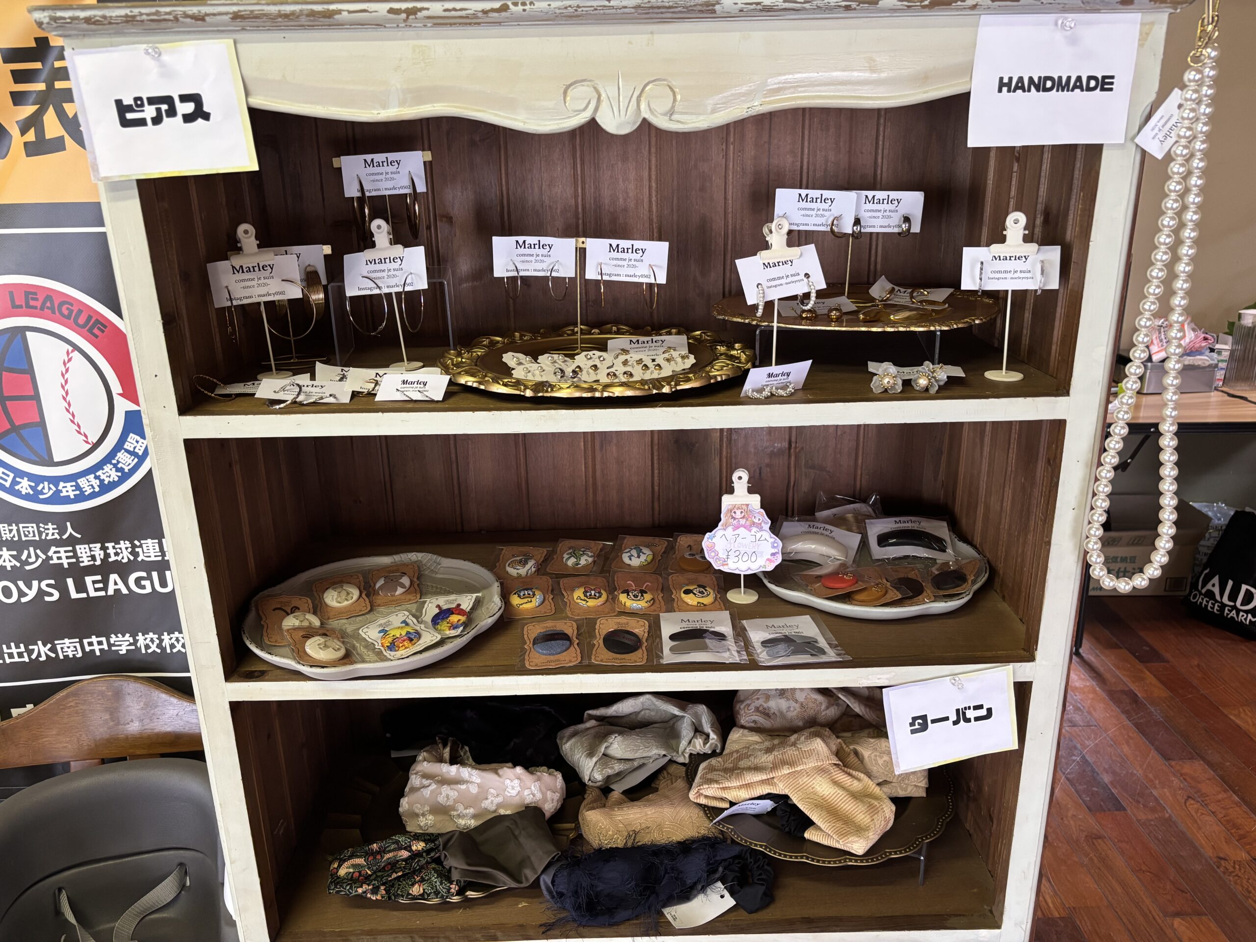 店内には販売用のTシャツやアクセサリー小物もおいてあります。