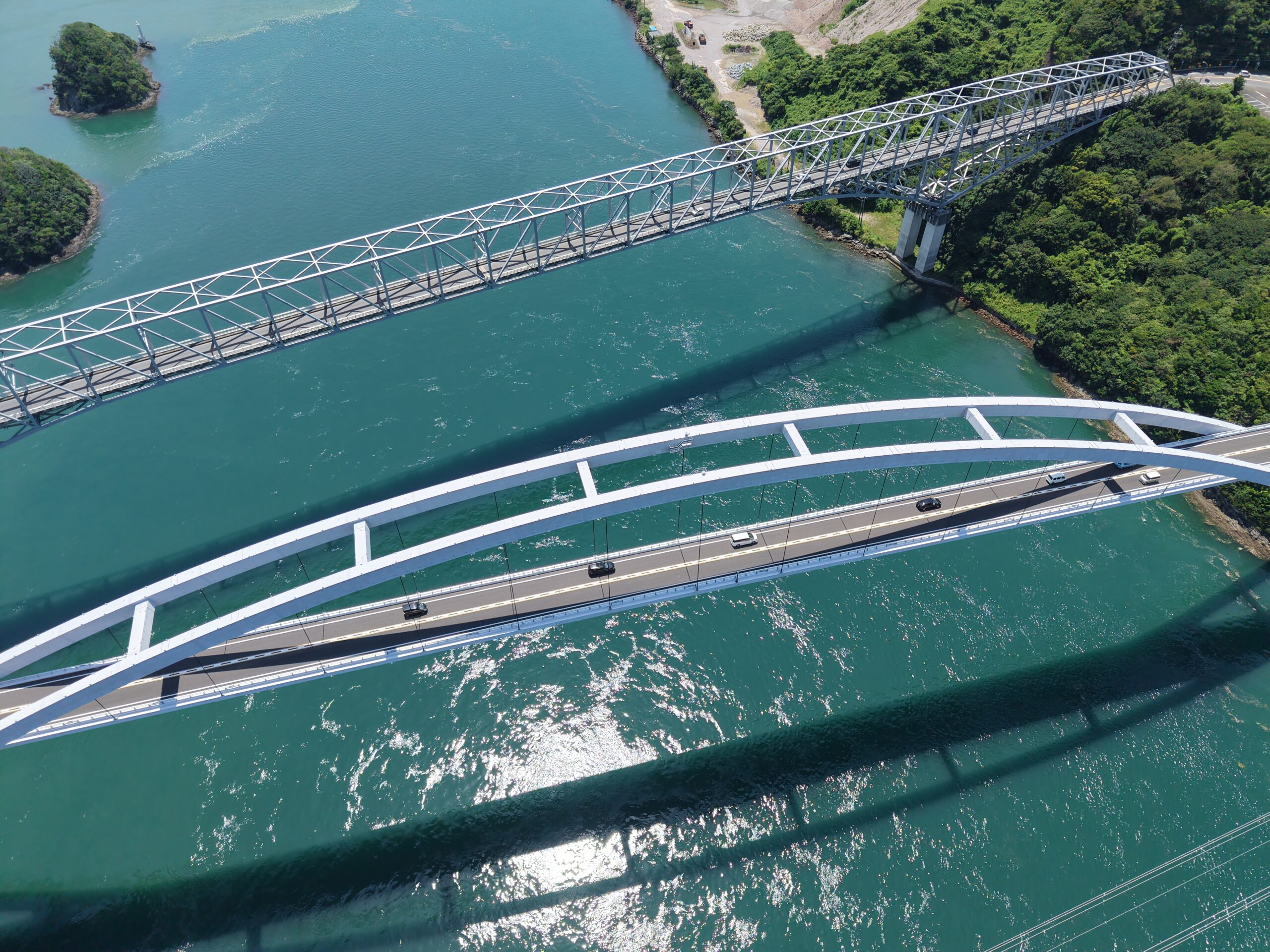 橋の下に回ってみますと島との距離が一番狭くなっているので