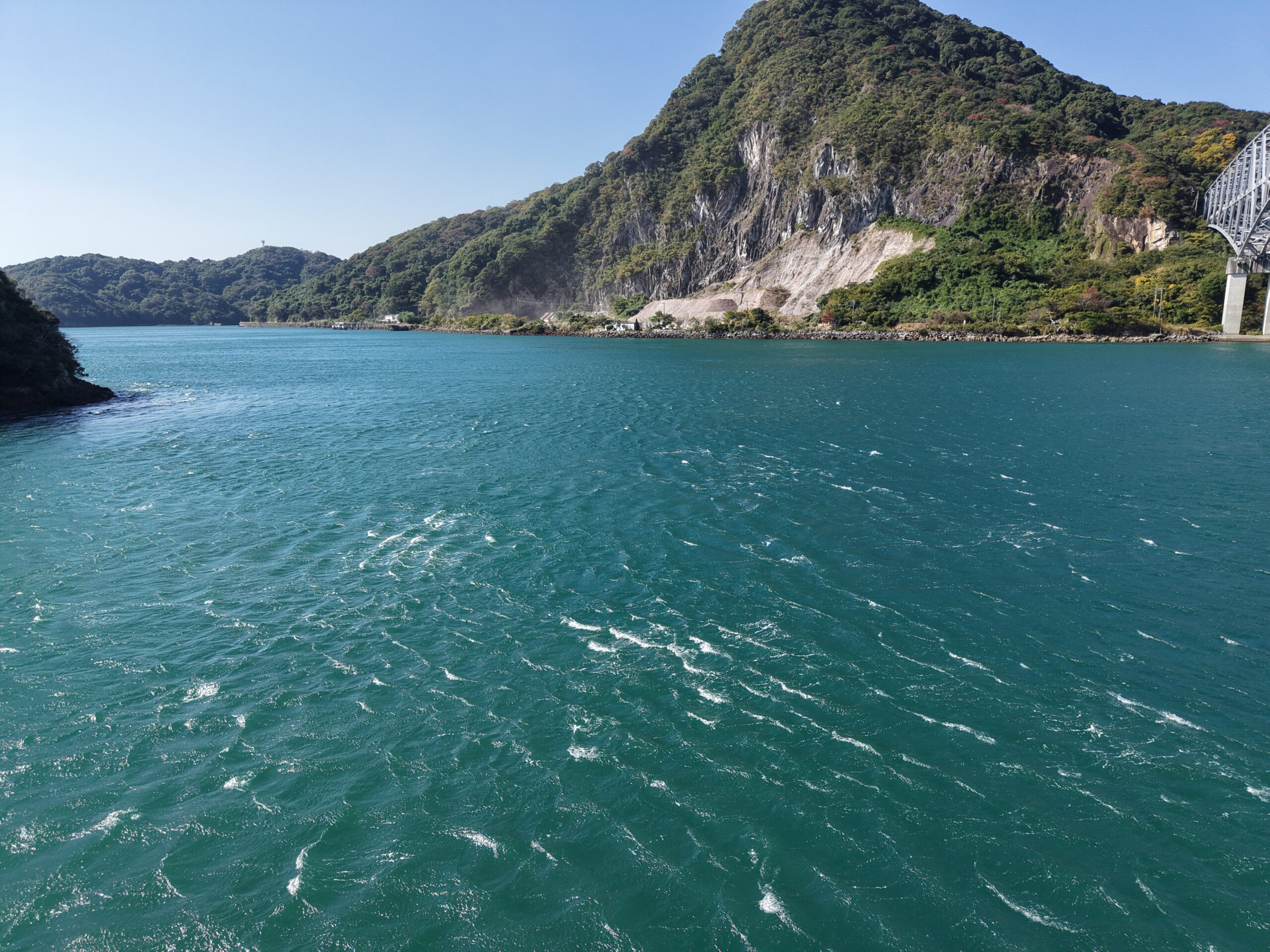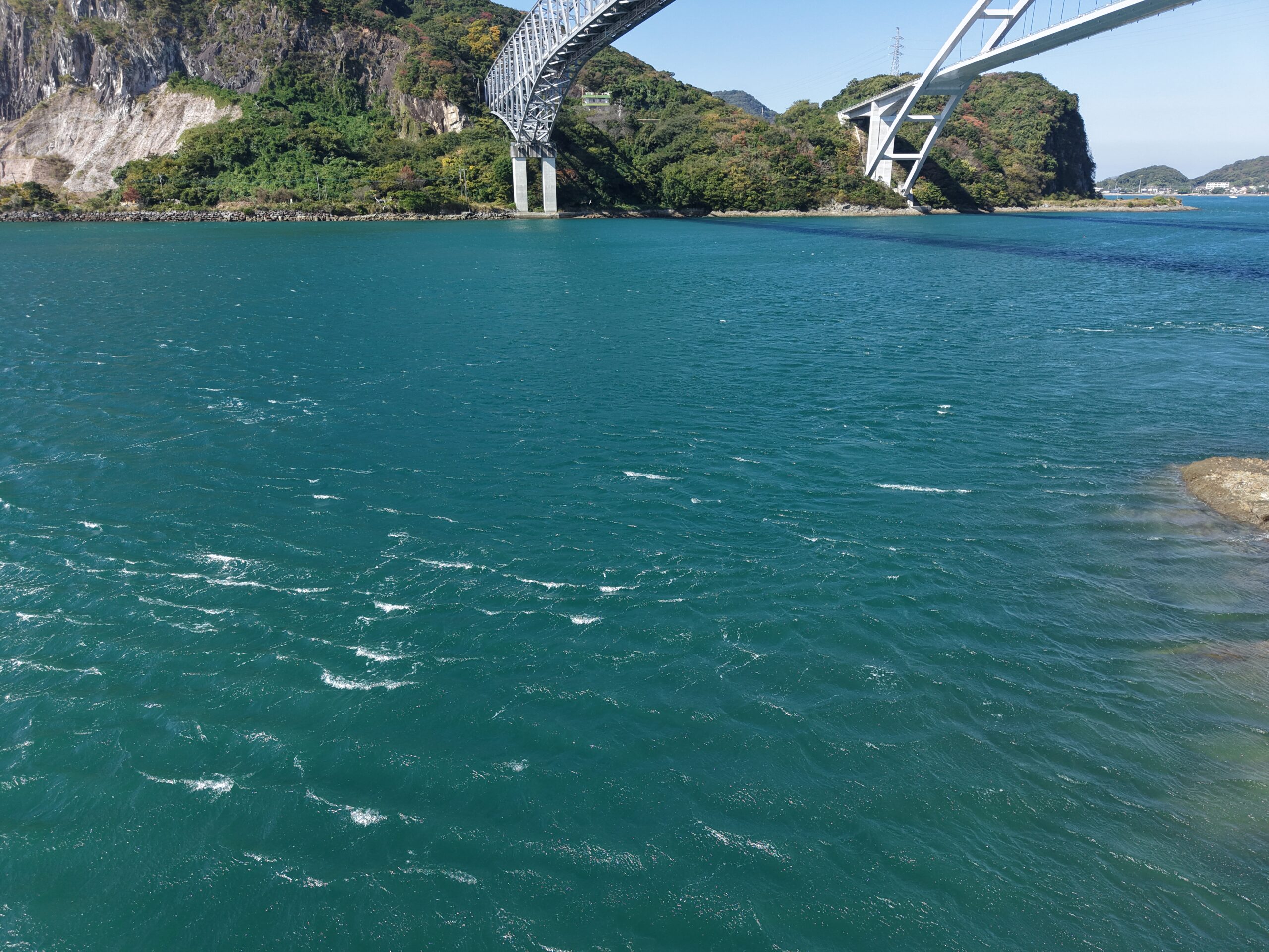 潮の流れが速く鳴門海峡の渦潮のように見えます。